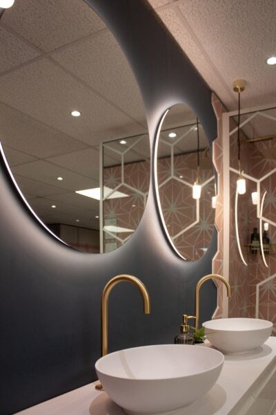 Another designer bathroom concept we love are mirrored cabinets with a choice of either subtle or bright backlighting. A backlit mirror creates a glowing effect on the wall giving the illusion of a floating mirror, which can be used to create an eye-catching focal point or highlight textured wall surfaces.