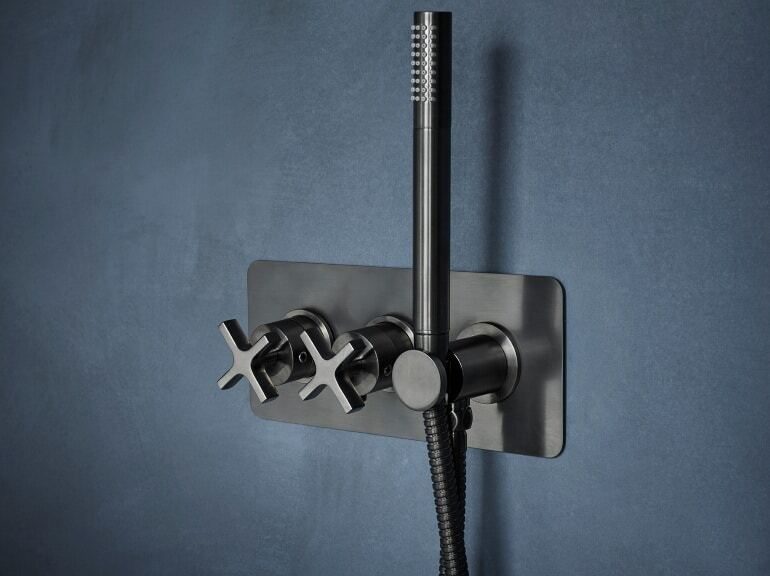 The Bank range by Coalbrook has a minimalist, industrial aesthetic. The gunmetal taps, showers, basin mixers and bath fillers provide a great contrast with exposed bricks, white tiles and sanitaryware. The other metals available, such as brushed brass or nickel would also work, but the shine of chrome is best suited for a more sleek, modern bathroom. For an industrial-look shower try the Bank 2 Outlet Shower Valve With Handspray and for the handbasin look at the Bank 3TH Deck Mounted Basin Mixer.