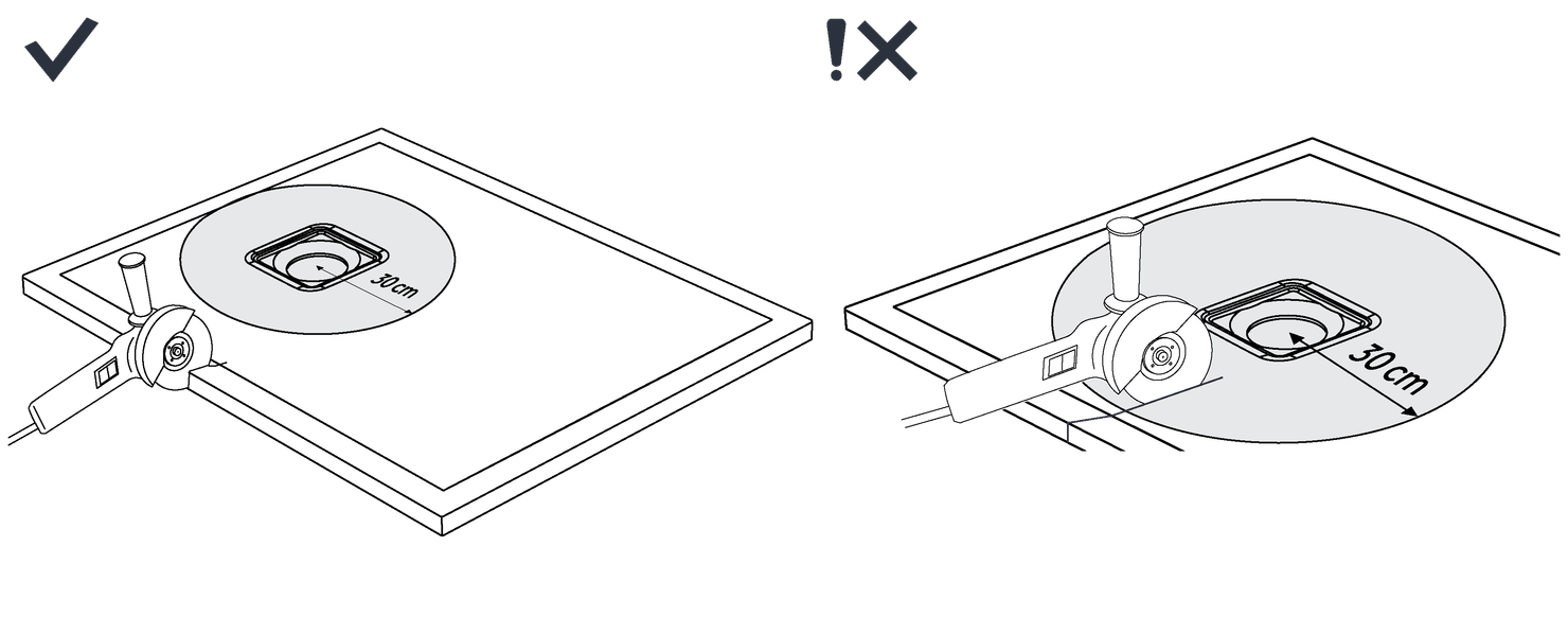 The tray can be cut to fit within any space with a 300mm circumference from the centre of the waste. Please note, you should not cut the tray within a 300mm circumference from the centre of the waste.
