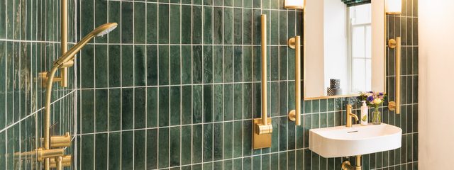 If committing to bold tiles is too daring, you can try adding some warmth and contrast by scattering an opposing colour into the equation. With a range of bathroom accessories available in four finishes, you'll be able to match your brassware to compliment your core chosen shade of green. Explore our Coalescence range to add in a contrasting texture element of ceramic handles available in black or white, or be bold and mix finishes. Discover your favourite from the 24 possibilities here.