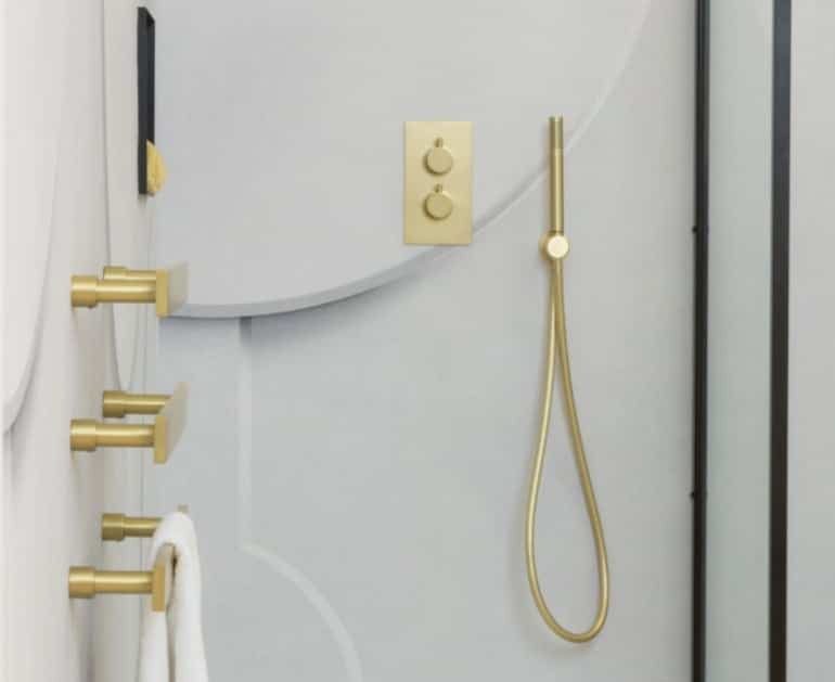 Using brushed brass fixtures and fittings will introduce a bold accent colour to any minimalist scheme. It will look particularly striking in a bathroom that is predominantly white or grey but work equally well with some of the richer colours we are seeing in bathrooms at the moment, such as green, blue and even maroon. At Coalbrook, you’ll find minimalist brushed brass taps, shower fittings and accessories. To add a sleek finish to your shower consider the Domo two outlet shower valve with hand spray or the concealed shower valve trim set