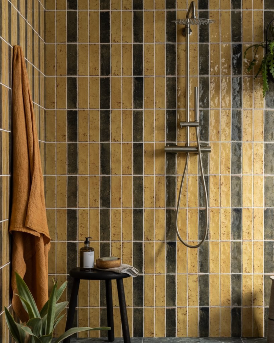 Quiet luxury works beautifully alongside bold design accents. Statement tiles, geometric feature walls, and large-format tiles are increasingly popular in 2026. Designers are pairing these with richer, deeper colours - think navy blues, yellows, pinks and forest greens - often set against natural finishes like wood, stone, and clay. This combination creates depth, texture, and warmth, making the bathroom feel inviting yet refined. According to the Property Daily, feature walls and statement tiling are among the top five trends for 2026, as they provide personality without overpowering the space.