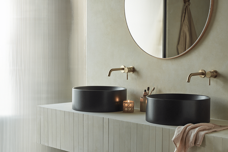 Domo wall mounted Two Hole Basin Mixer is contemporary in design. Utilises wall space, it is streamlined and sleek. Available in four finishes.