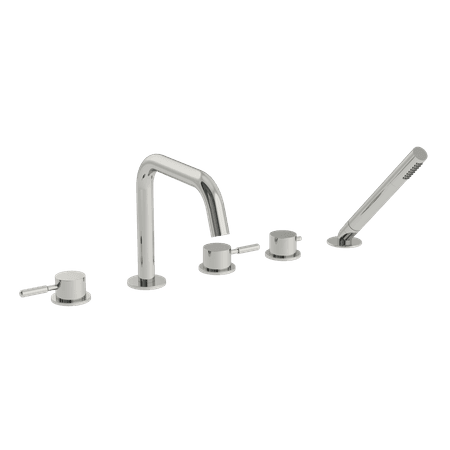 Every bathroom necessity is within arms reach with the Domo 5 hole Deck Mounted Bath Filler Valves with pull out handspray. Available in 4 finishes.
