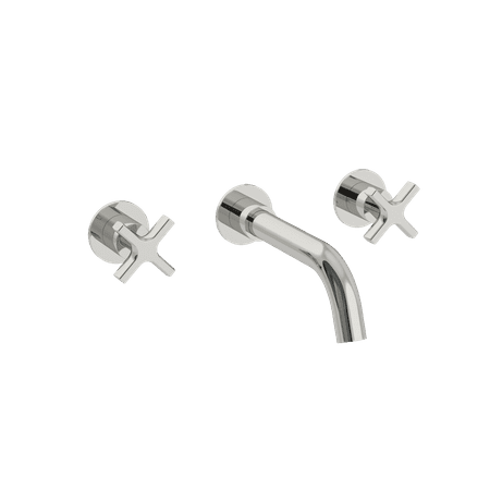 Bank 3TH Wall Mounted Bath Filler Spout with boss. Perfect for a minimal yet distinctive design element. Chrome, Brushed Brass, Brushed Nickel, Gunmetal.