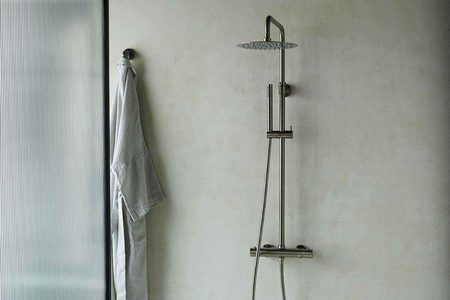 Multifunctional Shower Bar Mixer. 250mm fixed head and side rail. Be ready to face the day with a Coalbrook shower. 4 finishes.