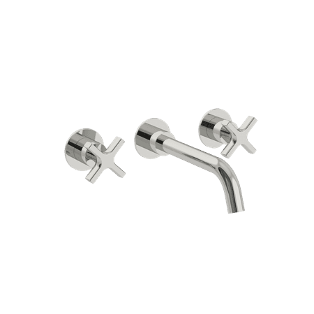 Bank 190mm Three Hole Basin Mixer Wall Mounted in a distinctive design, utilising wall space, streamlined and sleek. Available in 4 finishes.