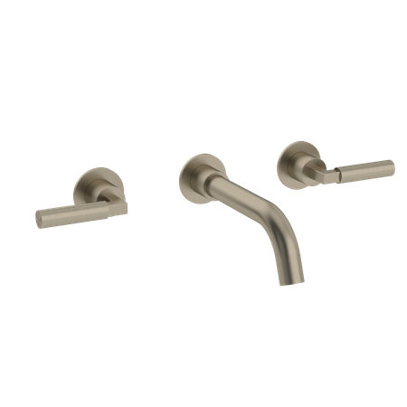 Zurich 3TH Wall Mounted Bath Filler spout with boss. Each twist and turn has been precisely mapped to utilise wall space. Available in 4 finishes.